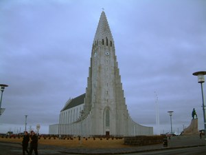 Het is nog verrassend lang licht zodat we nog foto's kunnen nemen van de aparte kerk van de stad. Deze torent vanaf een heuvel boven alle gebouwen uit. Hier komen we Peter en Marielle tegen en besluiten samen uit eten te gaan. De vrouwen lopen zo'n beetje alle restaurants af op zoek naar het gezelligste plekje. Uiteindelijk komen we bij een leuk restaurantje uit, waarje ook pizza's kunt eten. Pizza's zijn momenteel het meest polulaire eten in IJsland. Of dit door de smaak komt, of omdat het het goedkoopste eten op de menukaart is niet duidelijk.