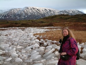 Om 9 uur gaan we met Margot als gids met een busje het binnenland in. Aanvankelijk rijden we door een wat troosteloos landschap. Even buiten Reykjavik doemen een aantal indrukwekkende kilometer hoge witte bergen op.
