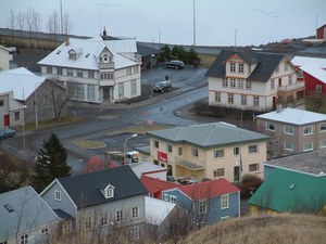 In Akureyi worden we opgewacht door 'de zus van Margot', die ons naar het Myvatn meer zal brengen. Eerst krijgen we echter een stadstour door Akureyri. Erg interessant is het niet. We krijgen te horen in welke flats de bejaarden wonen, waar studenten hun optrekje hebben en bezichtigen we de haven waar welgeteld 1 boot ligt.