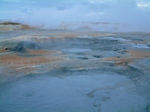 Hierna rijden we naar het hoogtepunt van de dag. In een mysterieus landschap komen de rookpluimen overal uit de grond, borrelt hete modder op en spuiten op kleine vulkanen lijkende steenhopen hete stoom. De verschillende algen kleuren het landschap oranje, zwart en blauw, terwijl op de achtergrond de dunbesneeuwde bergen het plaatje compleet maken. Indrukwekkend mooi.