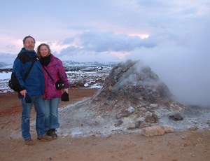 Hierna wisselen we in het café onze ervaringen uit. Ray, Hein en Miranda hebben een perfecte dag achter de rug. Met een geweldige gids ('zeg maar wat je wilt, het is jullie dag') hebben ze vulkanen beklommen en zijn ze bij de Kafla modderpoelen geweest. Hun 4-urige tour duurde een uur langer dan onze tour van 6 uur!!