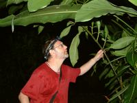 Het is al bijna 12 uur als we bij de auto terug zijn. Het is helaas te laat voor het tweede rondje aangezien we vanmiddag een boottour door de mangroves willen maken. Tijdens de lunch begint het vreselijk te hozen en besluiten we de rest van de dag maar vrij te nemen. 's Avonds na het eten nog even kikkers gezocht. Ien vindt na enig speuren weer een groene boomkikker met rode ogen. |