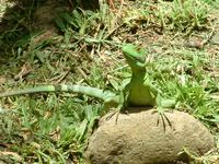 door de tuin. Niet echt spectaculair. Tortuguero moet het summum zijn van wat Costa Rica te bieden heeft. Hier aan de rand van het park komen we naast een enkele Jezus Christus leguaan teleurstellend weinig vogels en andere dieren tegen.