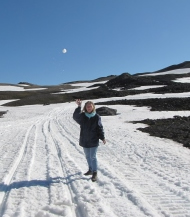 In de sneeuw van de Snaefellsjökul vulkaan Vanuit Arnarstapi moeten we naar Olafsvik aan de andere kant van de berg. We nemen niet de grote weg, maar de ruige pas omhoog die ons langs de gletsjer voert. De auto trekt het net. We worden beloond met mooie vergezichten en veel sneeuw. Boven lopen we een stukje door de op het oog verse sneeuw. In Arnarstapi kun je voor veel geld een tour naar dit plekje boeken. Een tochtje per sneeuwscooter kost €175 per uur. Ook kun je met 6 mensen voor €40 pp een paar honderd meter meerijden in een sneeuwschuiver. Lekker binnenlopen dus. Olafsvik We genieten een tijdje van de prachtige omgeving en dalen hierna af naar de haven van Olasvik aan de noordkust. Een rustig dorp met gelukkig één gezellig restaurant waar we heerlijk hebben gegeten. |